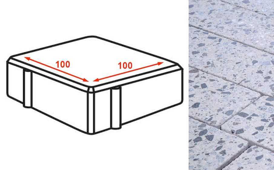 Плита тротуарная Готика Granite FINERRO, квадрат, Грис Парга 100x100x80 мм